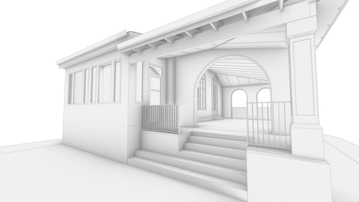 Schematic Design studies for an outdoor “Shade Room” / Side Porch addition to a Mediterranean style home in an inner NE Portland Historic neighborhood. The home itself is “non contributing” but being in a historic designated neighborhood the design is going through a land use planning and zoning review [90 days] and will also be visiting the neighborhood committee as well. We are working hard to create a vibrant and exciting new space while honoring and integrating the design with the existing homes architecture and the overall neighborhood scale texture and feel.