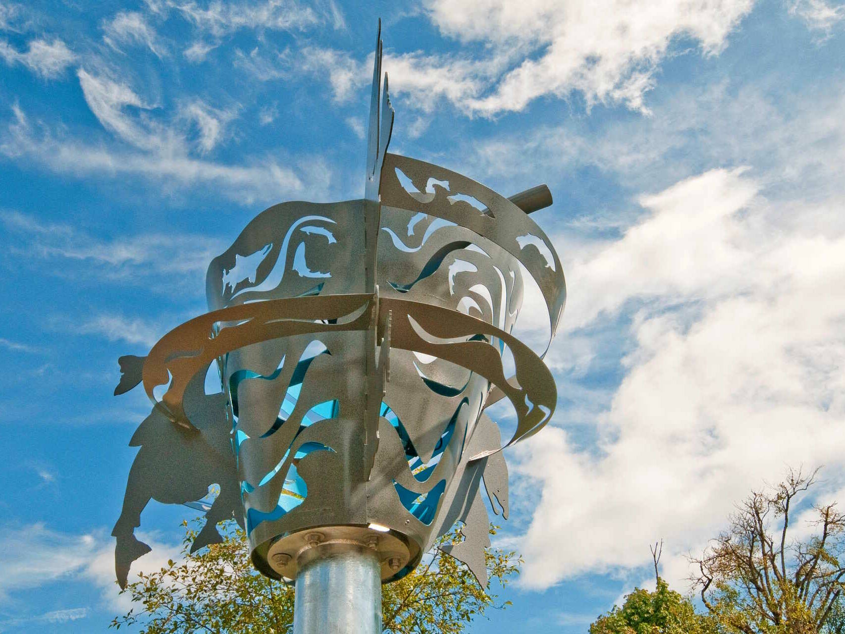 Design, Planning, Fundraising Assistance, Fabrication and Installation Oversight of Salmon Tree Cycle Located at Entrance to City of St Helens on highway 30 at McNulty Creek Bridge.